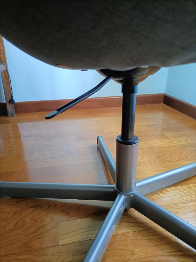 Sedia poltroncina in tessuto color grigio con altezza regolabile, in ottimo stato.