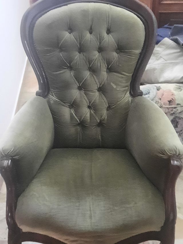 Dettagli del prodottoPoltrona stile barocco in legno e velluto. Lavorazione artigianale ottimo stato Misure del prodotto