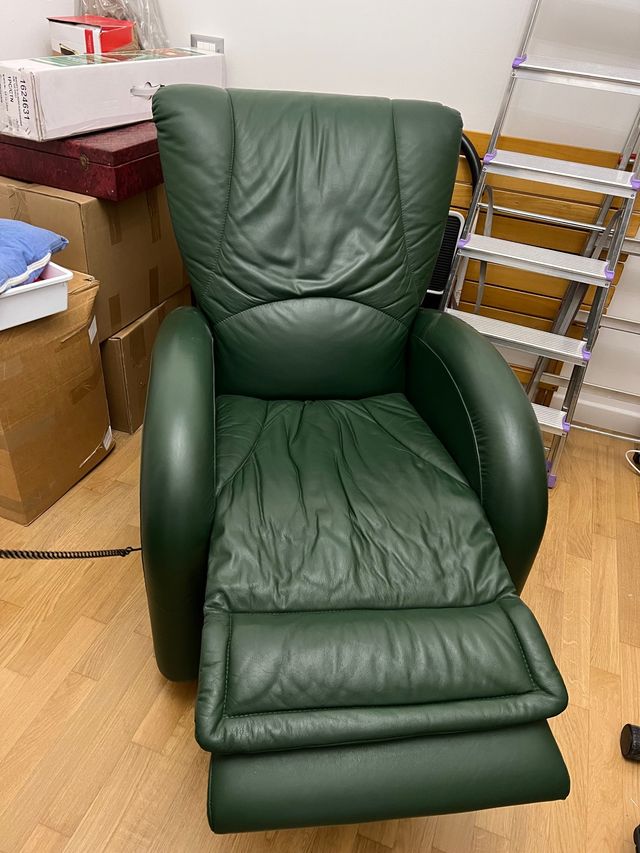 Dettagli del prodottoVendo per inutilizzo poltrona massaggiante in pelle colore verde smeraldo, munita di telecomando per effettuare le diverse funzioni, tra cui: massaggio zona lombare e schiena (rullo) e funzioni di vibrazioni a zona. Facile da usare e spostare è dotata di ruote . Totalmente estendibile sia lo schienale che il poggia piedi con tasca porta oggetti laterale