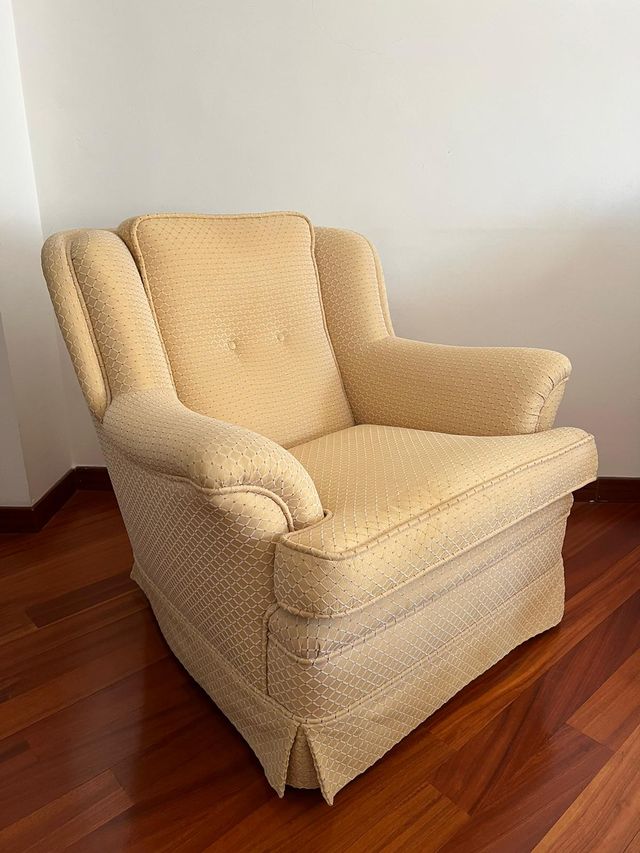 Dettagli del prodottoVendita poltrona in tessuto elegante per arredamento del living o della sala, in perfette condizioni (come nuova), con pouf / poggia piedi in omaggio.