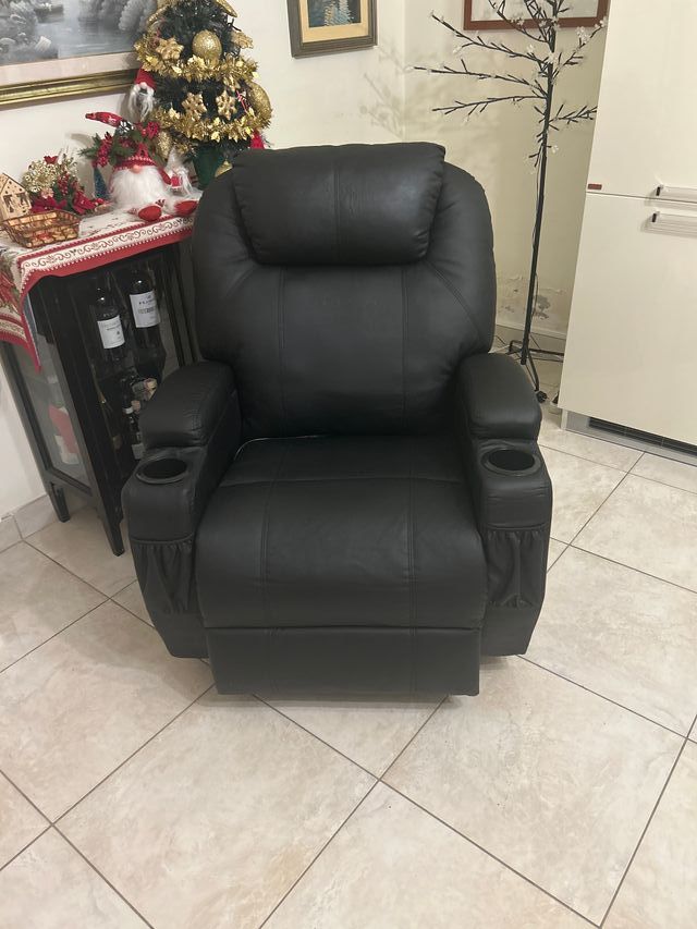 Dettagli del prodottoComoda poltrona relax in similpelle nera, quasi nuova e in ottime condizioni e massaggiante