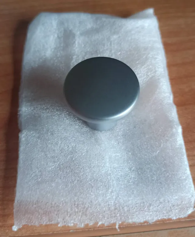 Dettagli del prodottoPomelli per mobili in formato tondo. Colore argento opaco. Materiale metallo. Il diametro superiore del pomello è di 24 mm. Il diametro inferiore, in aderenza al mobile, è di 12 mm.