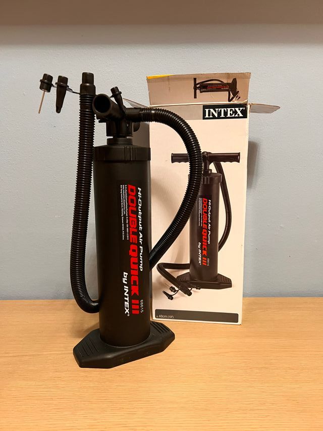 Dettagli del prodottoHai bisogno di gonfiare materassini, gommoni o palloni in un lampo? Allora questa pompa a mano INTEX Double Quick III è quello che fa per te! Vendo per inutilizzo, praticamente come nuova e perfettamente funzionante.
