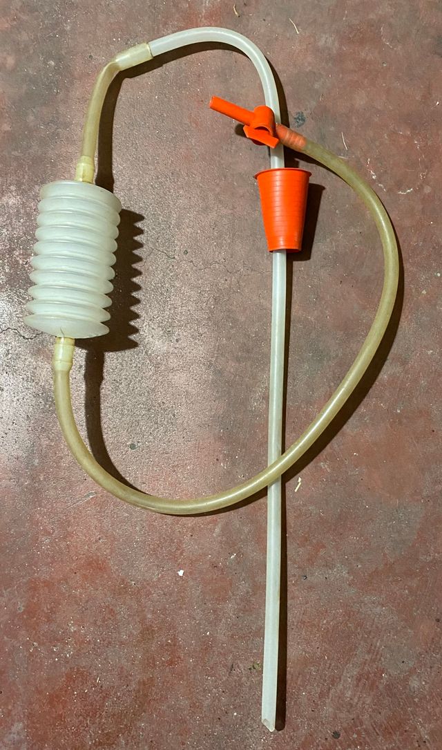 la parte lunga si immerge nella bottiglia e tramite la pompetta vinene travasato il liguido