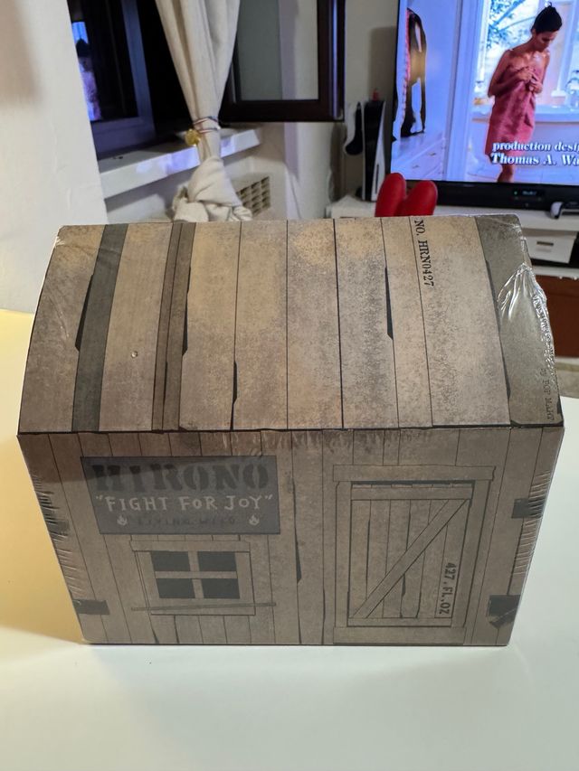 Dettagli del prodottoBellissimo peluche Hirono "Fight for Joy" di Pop Mart, ancora confezionato nella sua scatola a forma di casetta.