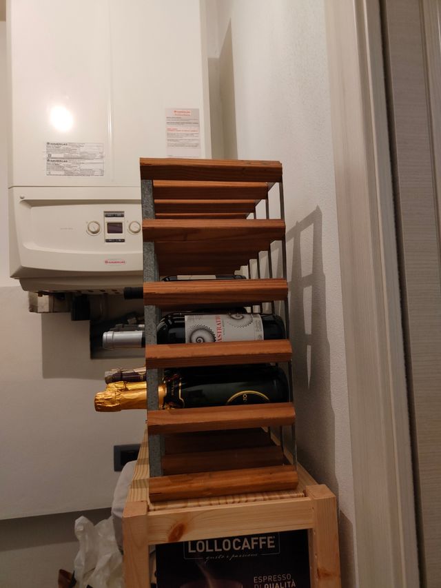 porta bottiglie di legno appendibile al muro fatto a mano