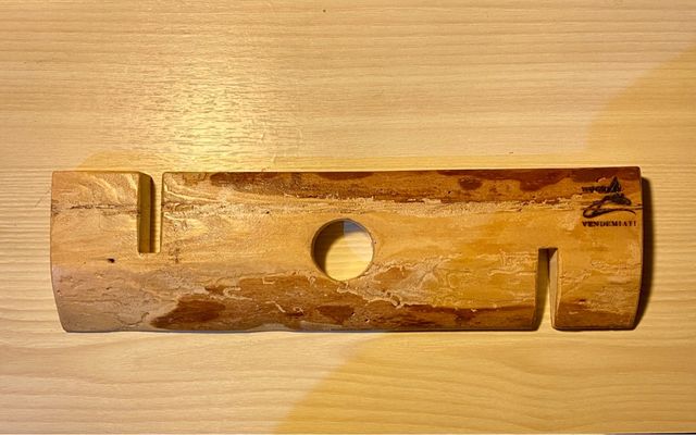 Vendo porta calici di vino realizzato in legno. Dimensioni : 30,5cm X8,5 cm.