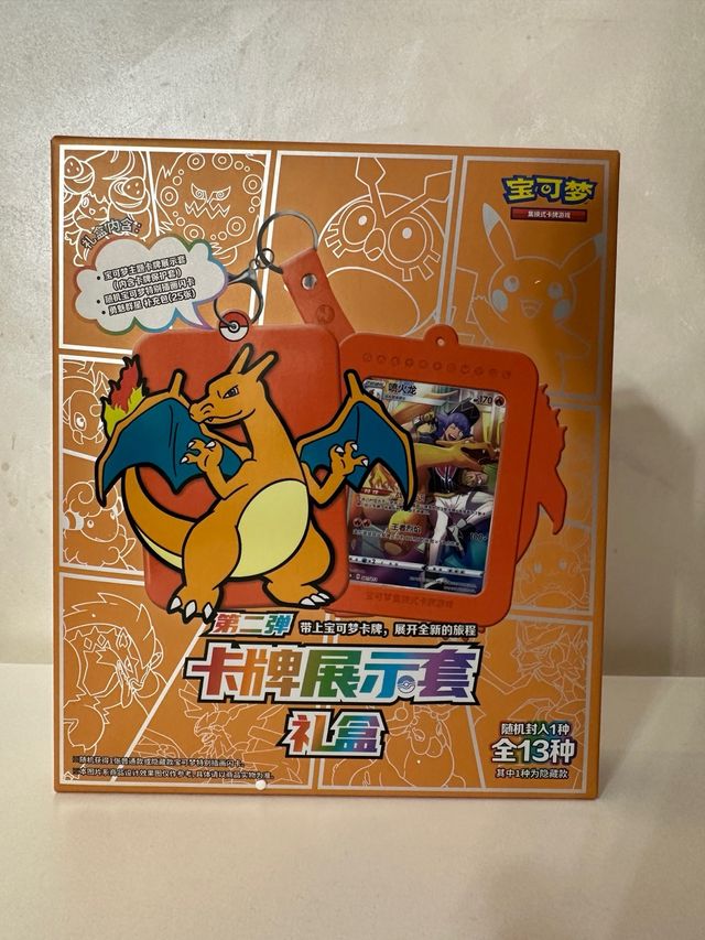 Dettagli del prodottoSet regalo a tema Pokémon con porta-carte rigido in stile Charizard, ideale per collezionisti o come idea regalo.