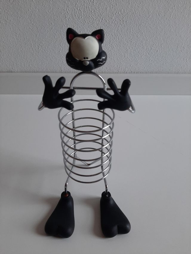 Porta CD in filo d'acciaio, per 6 CD, sagomato a forma di gatto. I CD della foto sono solo per allestimento, quindi sono esclusi