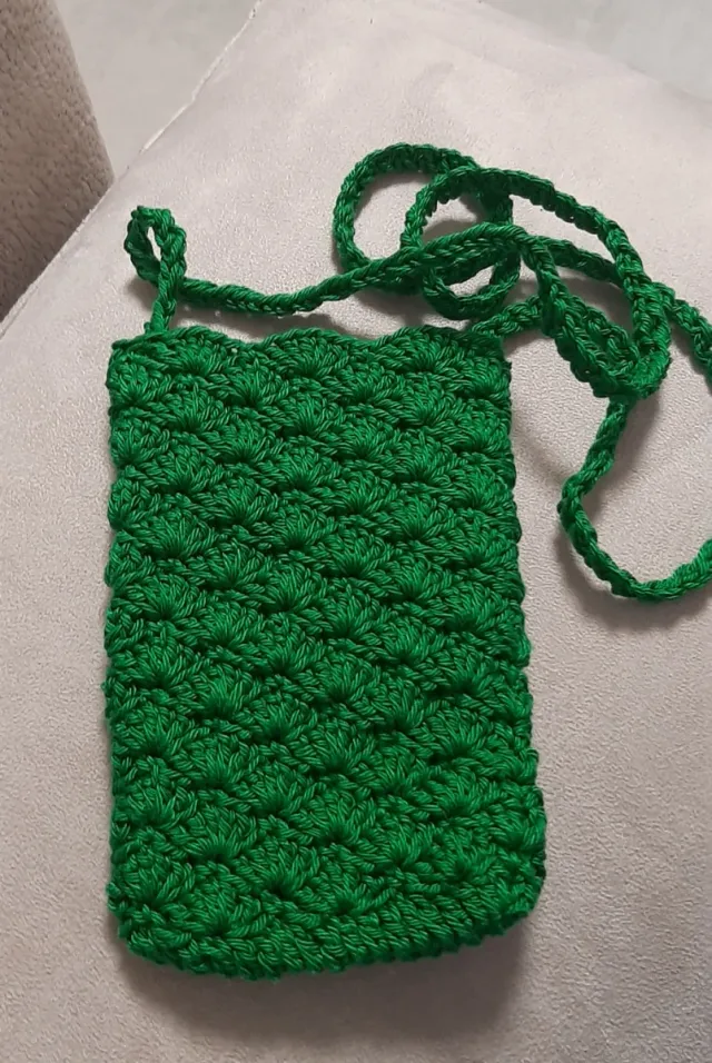 Porta cellulare o porta occhiali realizzato all'uncinetto. Vari colori - Motivo a conchiglia. - Tracolla inclusa.