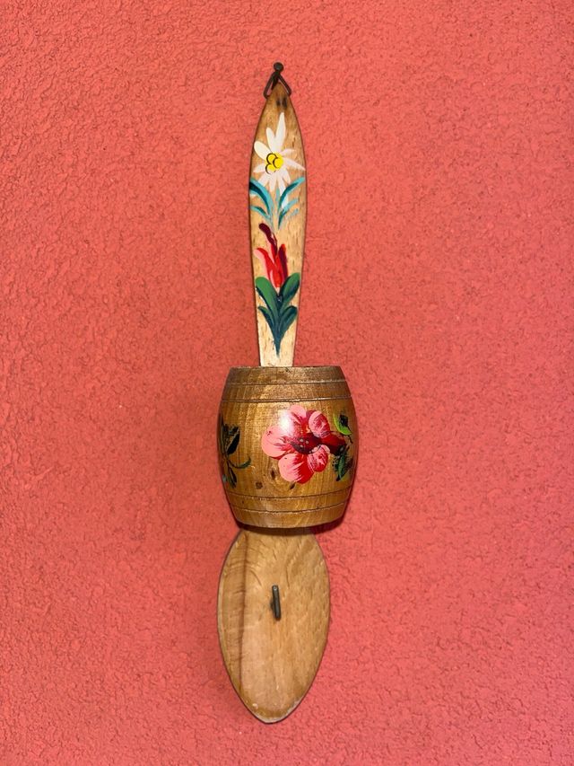 Porta chiavi vintage da appendere, in legno con motivi floreali.
