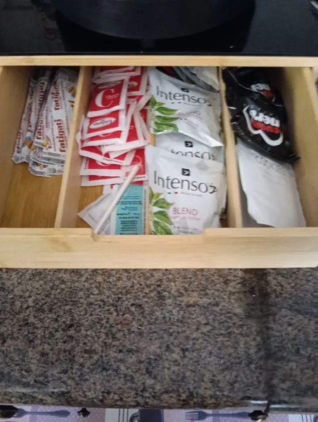 Organizzatore per cialde o capsule di caffè, ideale per tenere in ordine la tua postazione. - Materiale: Legno - Design a scomparti