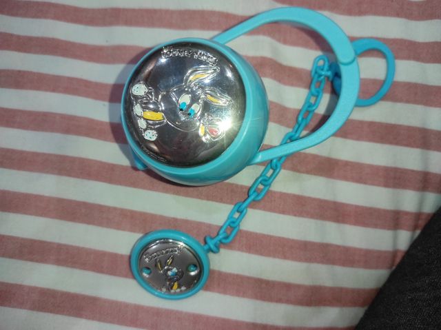 porta ciuccio Looney toons con dettagli argento vero . scatolina e catenella.