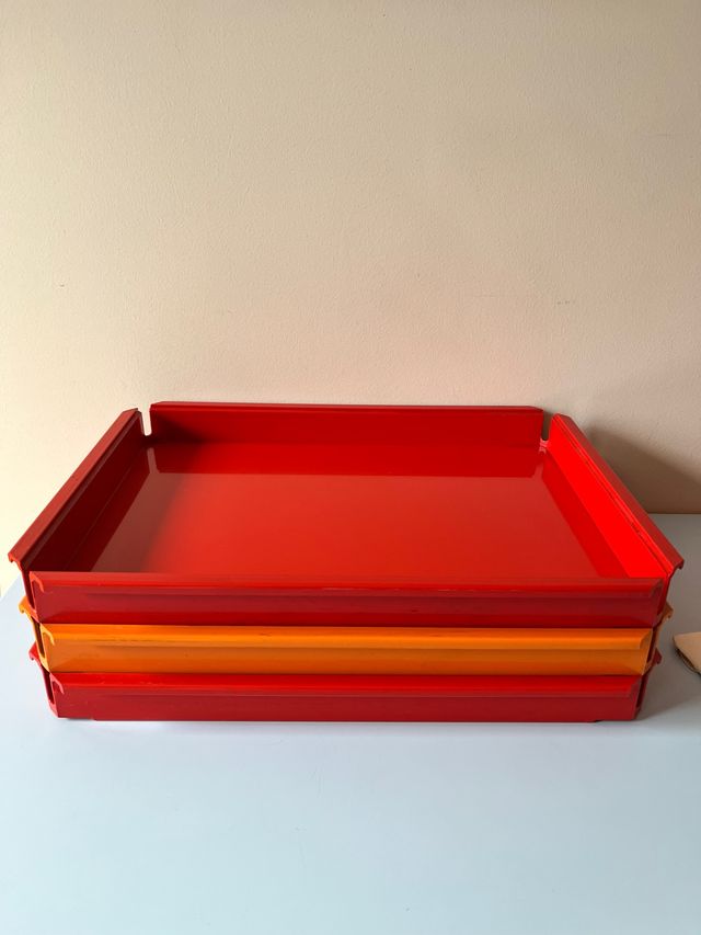 3 porta documenti/vassoi vintage In plastica dura Impilabili Ottime condizioni, non hanno marchio