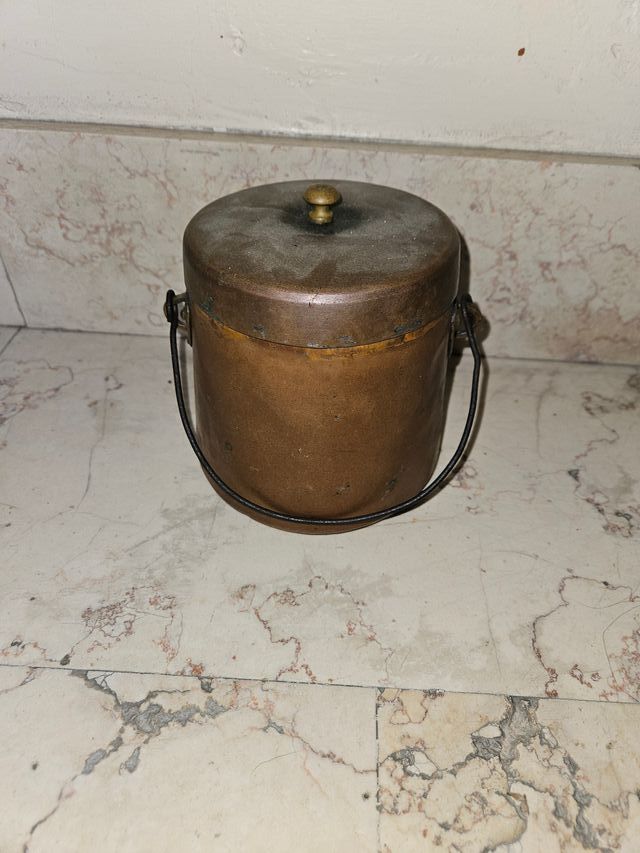 Portalatte completo di coperchio dell’800 in rame. Altezza 13 cm