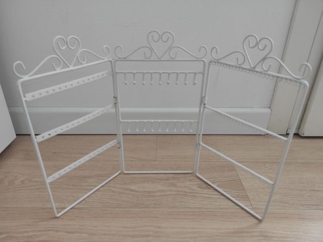 porta orecchini bianco di Maison di Monde. suddiviso in 3. i pezzi sono tutti ruotabili e si possono mettere a proprio piacimento. chiuso occupa pochissimo spazio. nuovissimo.