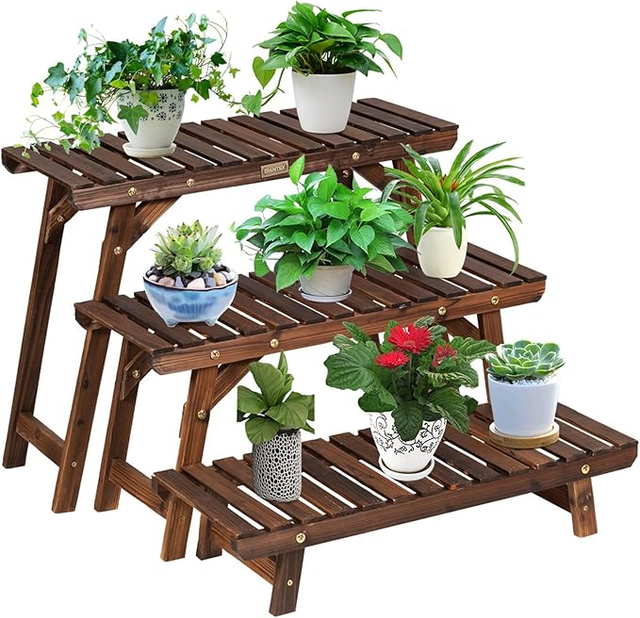 🌻【Ampio Spazio】Con 3 livelli, questo scaffale di legno può reggere molti vasi di dimensioni diverse. Ogni m