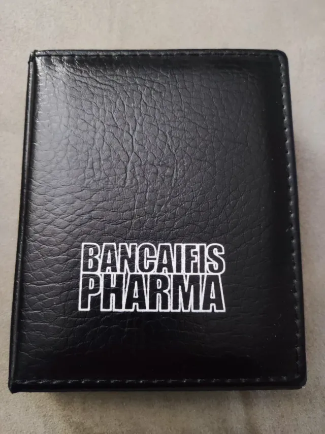Porta post-it in ecopelle nera logo BANCAIFIS PHARMA stampato Chiusura a libro