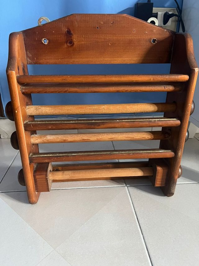 Porta rotolo in legno colore noce,legno massello di abete, appendibile a parete, lunghezza 34cm, altezza 39cm, larghezza 10 cm