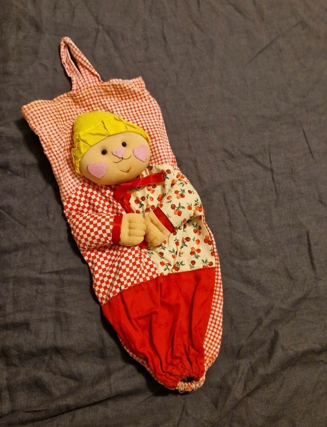 Dettagli del prodottoSacchetto porta spesa vintage a forma di bambina, realizzato in tessuto. Perfetto per dare un tocco retrò alla tua cucina!