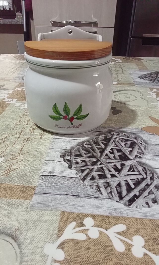 Dettagli del prodottoPorta spezie in ceramica con coperchio in legno. Adatto anche da appendere. Nuovo mai utilizzato. Misure del prodotto