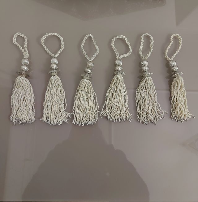 Set di 6 porta tovaglioli effetto argento e perline. Acquistati da Zara Home, mai utilizzati.