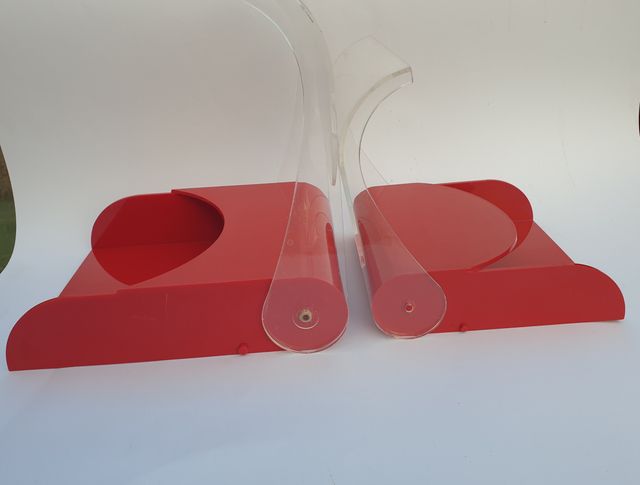 Dettagli del prodottoCoppia di porta tovaglioli dell Guzzini epoca anni 75/80 in plastica rossa e metacrilato trasparente . Modello Mediterraneo