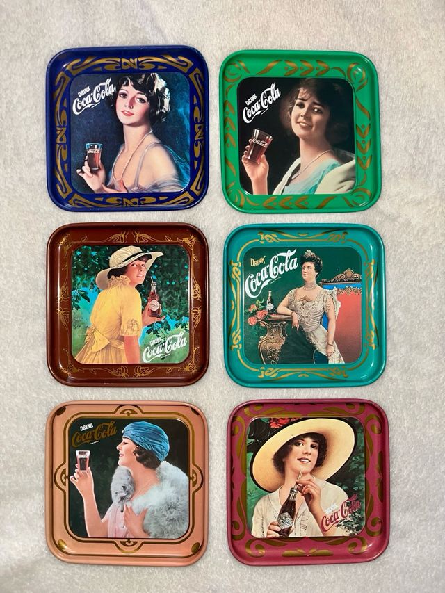 Dettagli del prodottoIl set è composto da 6 portabicchieri della Coca Cola vintage, realizzati nel 1986 per celebrare il centenario della Coca Cola.