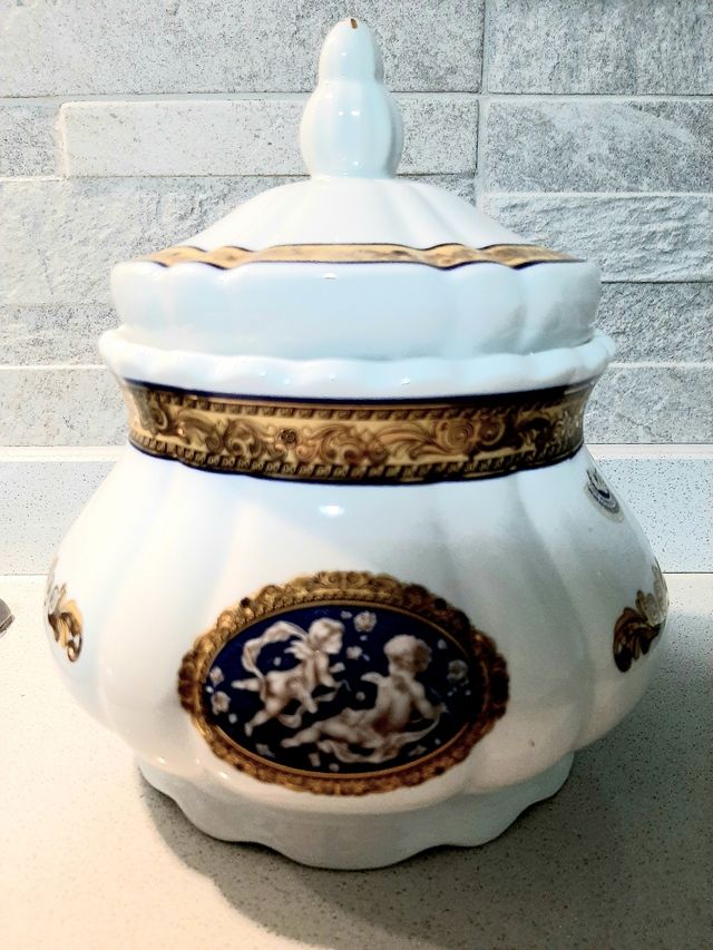 Portabiscotti di porcellana. Altezza 22 centimetri.