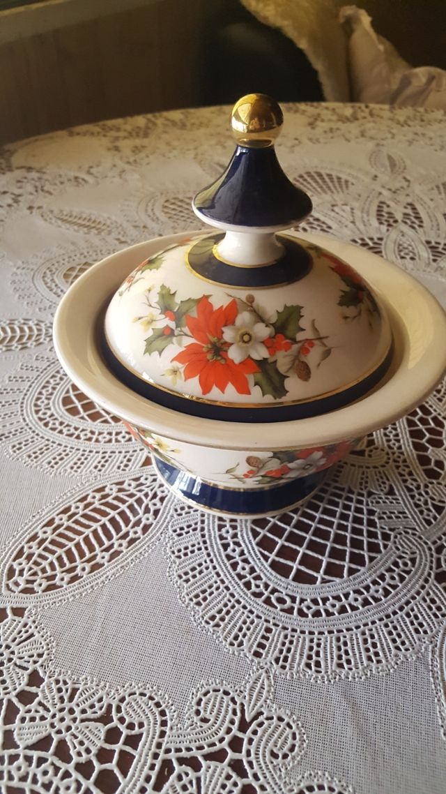portabonbon in ceramica con coperchio, decoro floreale, piccola scalfittura sul bordo.