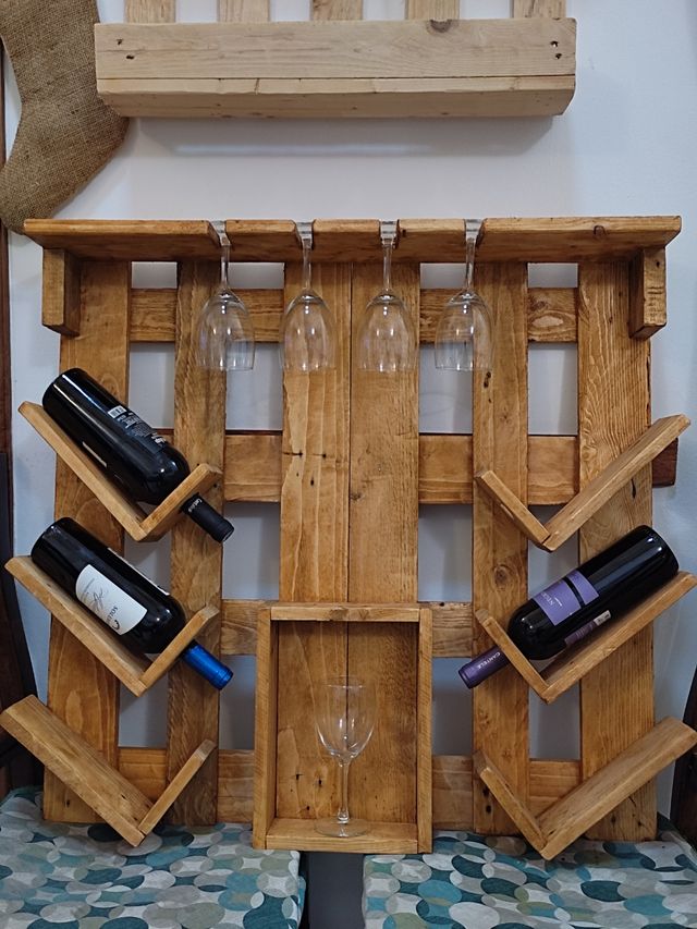Dettagli del prodottoFatto in casa utilizzando legna riciclata, mai usato. Può contenere 6 bottiglie di vino e 4 bicchieri o più.