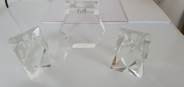 Porta Candele vetro effetto cristallo. Sono nuovi e mai usati e non hanno difetti. Sono forme geometriche.