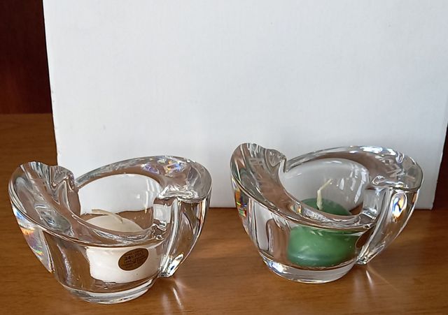 n. 2 eleganti portacandele in cristallo al piombo, made in Italy, di circa 7x10 cm, con un foro di 4/5.