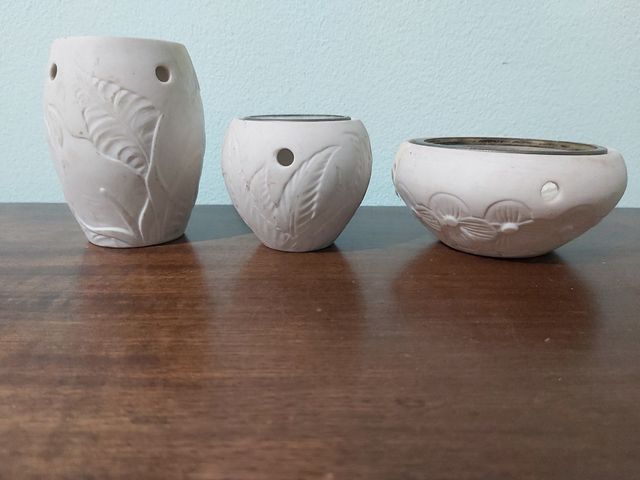 Dettagli del prodottoTre portacandele in ceramica, da richiedere anche singolarmente. Misure primo vasetto: altezza 8 cm, larghezza 5 cm, peso 102 grammi. Misura secondo vasetto: altezza 5 cm, larghezza cm, peso 71 grammi. Misura terzo vasetto: altezza 4 cm, larghezza 8 cm, peso 127 grammi.