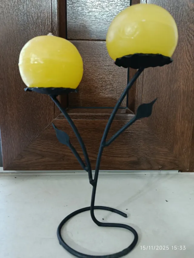 Portacandele in metallo con 2 candele gialle
