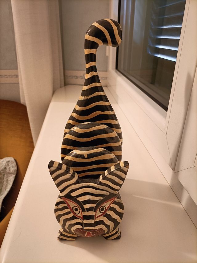 portacarte o CD in legno a forma di gatto, dipinto a mano con dei difetti come in foto
