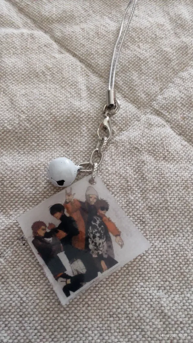 Portachiavi fatto a mano ispirato a 19 Days. - Include un piccolo campanellino bianco.