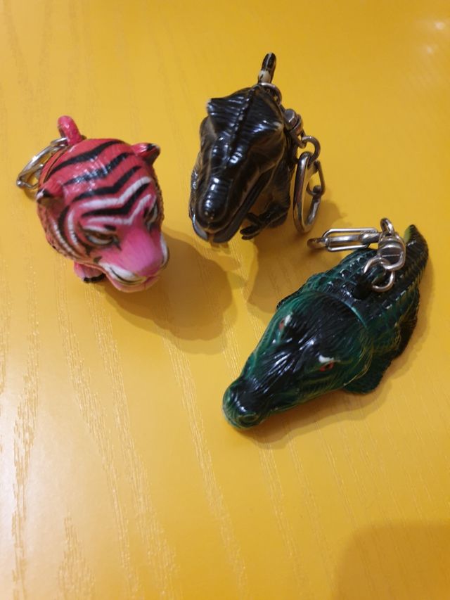 Dettagli del prodottoSet 3 portachiavi con eventuale luce ( pile scariche) Tigre,Dinosauro e Coccodrillo. Misure del prodotto