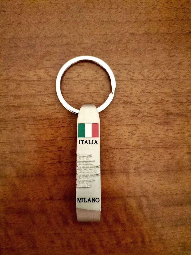 Portachiavi apribottiglia in metallo, souvenir della città di Milano. Articolo da collezione. Ottime condizioni.