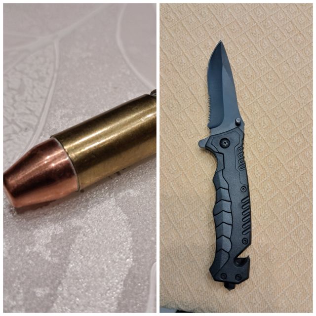 Portachiavi realizzato a mano con un design unico. + Coltellino - Materiale: Metallo - Colore: Nero - Design: Pieghevole