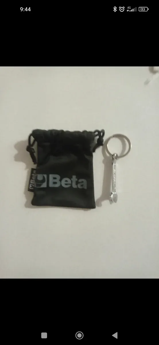 Portachiavi con sacchetto portaoggetti. - Portachiavi in metallo. - Sacchetto in tessuto nero con logo Beta.