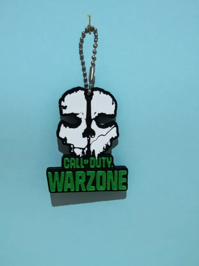 Portachiavi a tema Call of Duty Warzone. - Design con teschio bianco e nero. - Logo Call of Duty Warzone in verde.