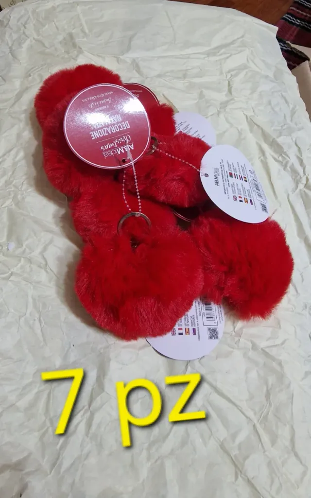 Portachiavi a forma di cuore in morbido peluche rosso. Perfetti per decorare borse, zaini o come piccoli pensieri.