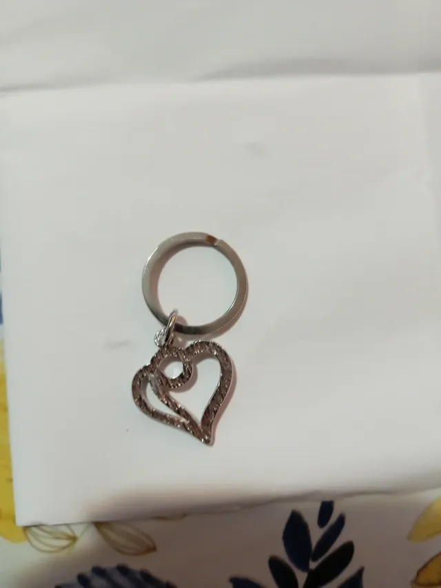 Portachiavi con un grazioso ciondolo a forma di doppio cuore, impreziosito da piccoli strass. - Design a doppio cuore. - Dettagli scintillanti con strass.