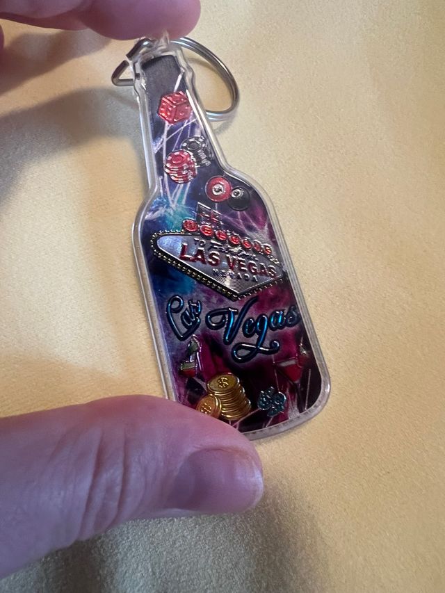 Dettagli del prodottoPortachiavi a forma di bottiglia, ricordo di Las Vegas. È realizzato in plastica trasparente e presenta immagini a tema Las Vegas, come da foto. - Souvenir originale di Las Vegas. - Perfetto per collezionisti o amanti dei viaggi.