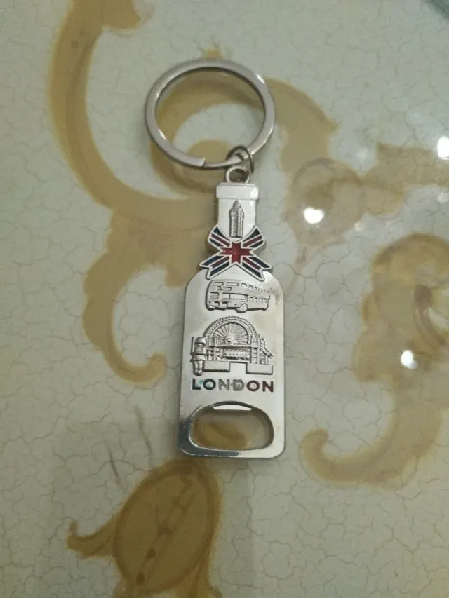 Dettagli del prodottoPortachiavi a forma di bottiglia con design ispirato a Londra.