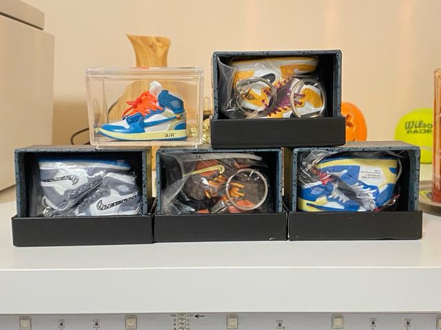 Dettagli del prodottoPortachiavi scarpa Jordan Luis vuitton, off white (giallo e azzurro) e dior.