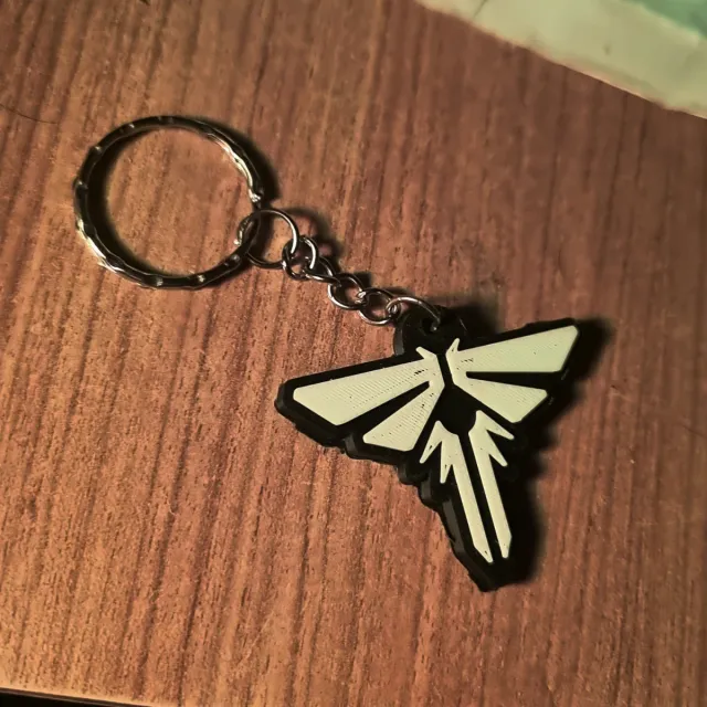 Portachiavi con il logo iconico del gioco The Last of Us. - Design a forma di lucciola. - Materiale in gomma. - Anello metallico resistente.