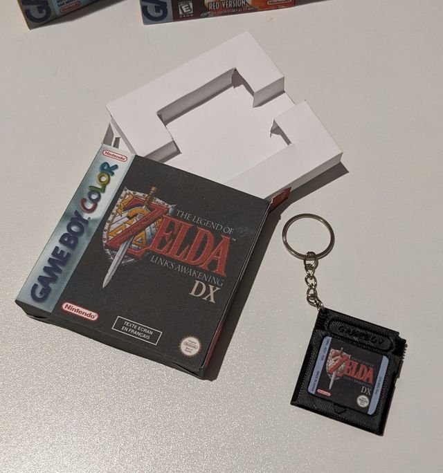 Dettagli del prodottoPortachiavi cartuccia Gameboy del gioco the Legend of Zelda link s awakening DX con scatola e inserto.