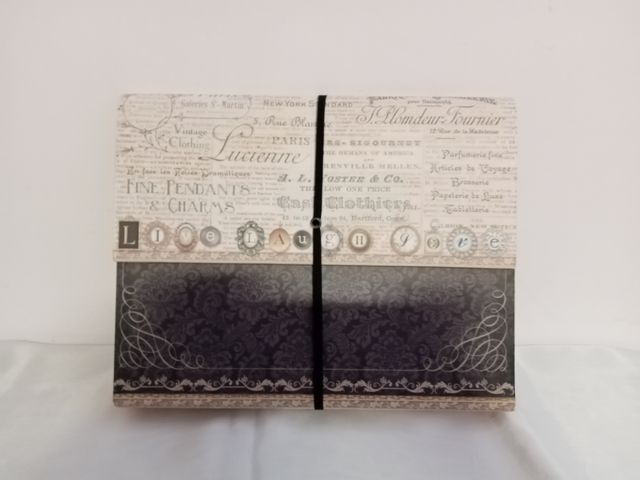 - Motivo newspaper con scritte in francese e inglese.